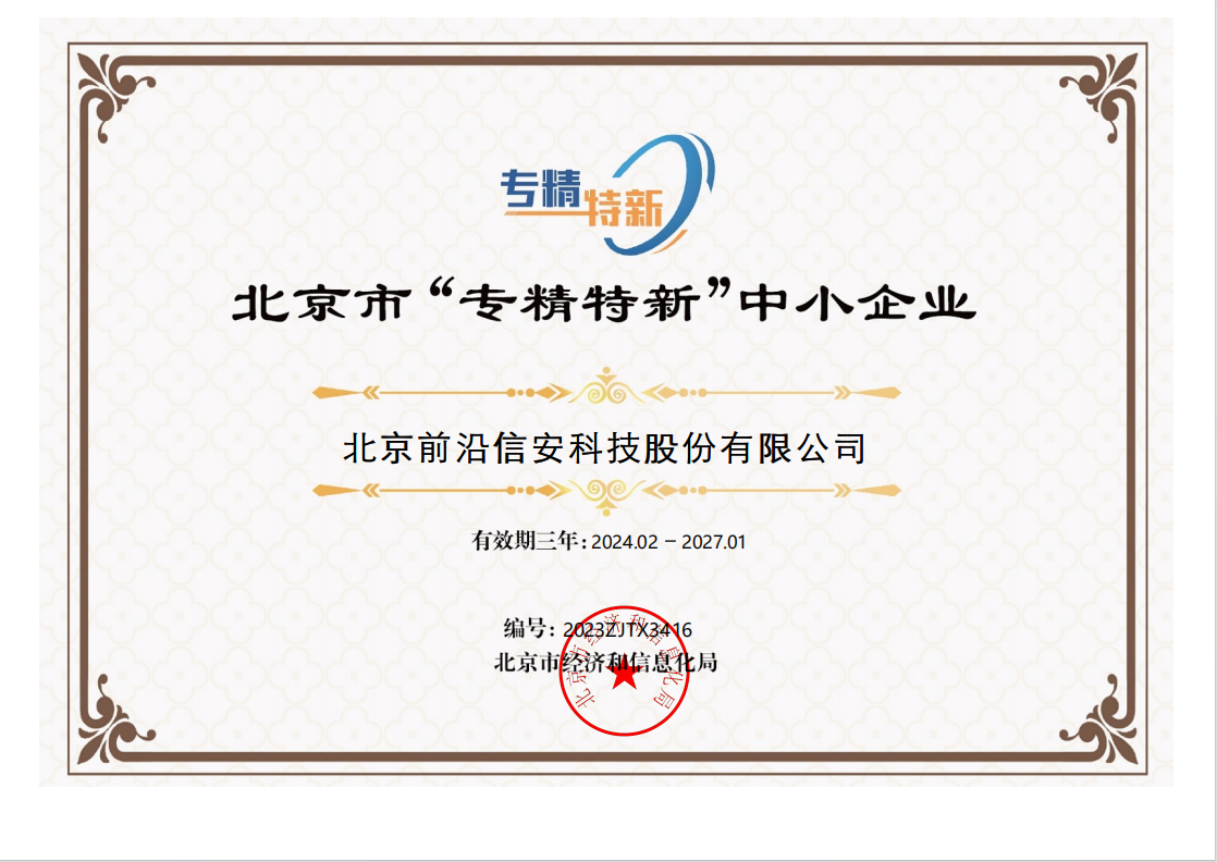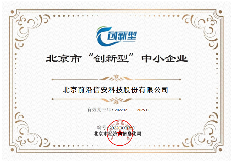2023年4月,按照工业和信息化部《优质中小企业梯度培育管理暂行办法》(工信部企业〔2022〕63号)、《北京市优质中小企业梯度管理实施细则》要求,九游网页版取得了2023年北京市“创新型”中小企业认定证书。