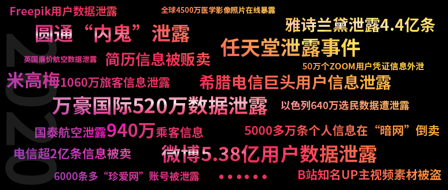 2020年,新冠疫情肆虐全球,催化各行业加速数字化转型,数据的价值在进一步凸显,数据的泄露也在持续高频发生,企业面临资产与声誉的重大损失,公众深受隐私曝光与骚扰诈骗的困扰。